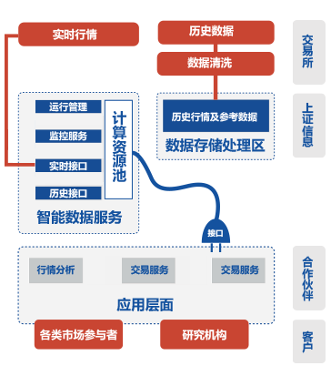 智能数据包含云端服务和订阅服务两个方向。云端服务“云数聚”,包含资源租用服务、数据服务(包括历史数据和实时行情数据)等内容,可以用于历史行情回溯、策略模型验证、交易模拟测试等相关应用;订阅服务包含“历史数据”和“每日行情数据”,分别提供上交所行情历史存量数据以及每日订阅数据服务。
